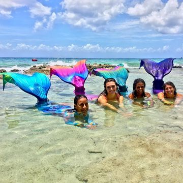 Minimum age ~ 6 yrs. In a safe environment with a certified PADI Mermaid Instructor, we offer mermaid fins and tails for all ages, shapes, and sizes. These 1-hour mermaid experiences can be conducted at our beach site or your private pool. Sign up now!